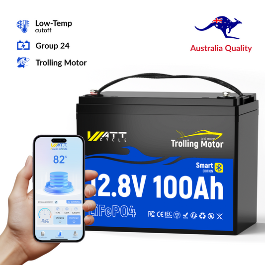 【BLACK FRIDAY SALES】WattCycle - 12V 100Ah Group 24 LiFePO4 Battery with Bluetooth for Trolling Motors
