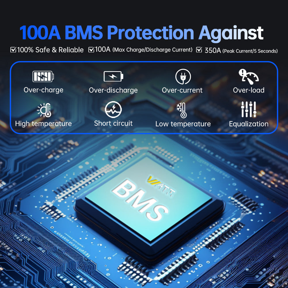 Eightfold Safety Protection: Over-current/Over-charge/Over-discharge/Over-load/High Temperature/Low Temperature/Short Circuit/Equalization Protection
