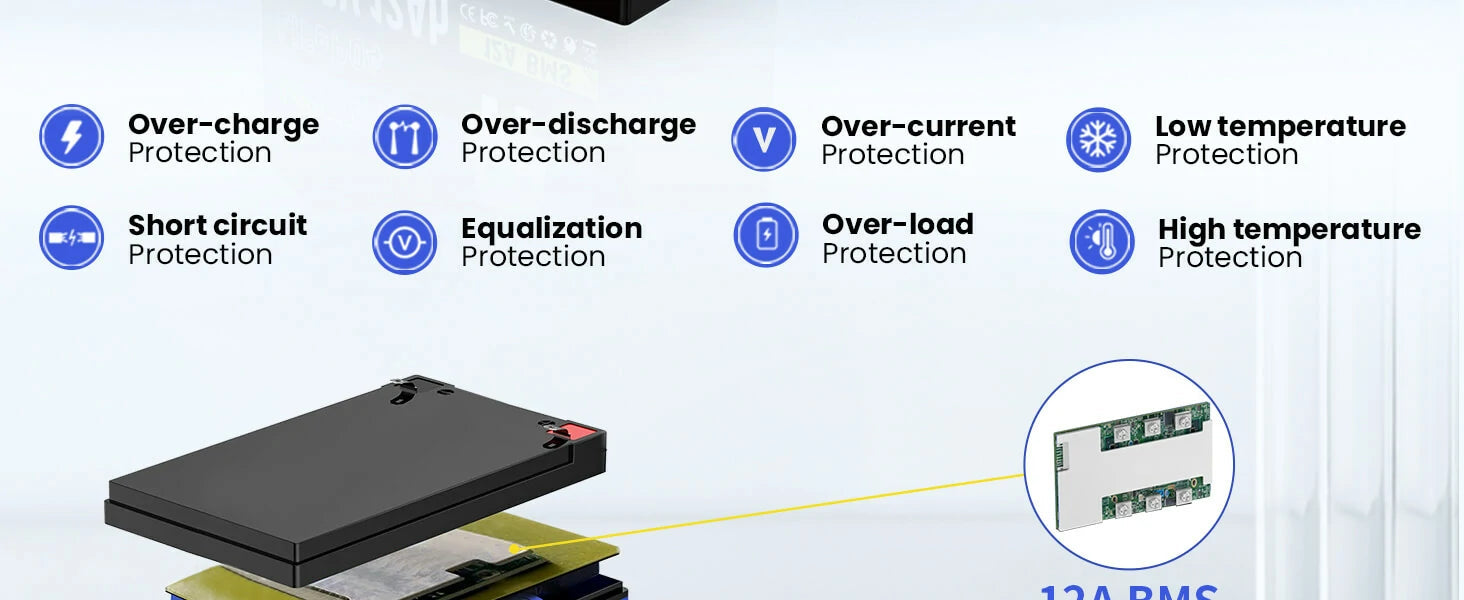 - Reliable: Built-in 12A BMS | 156.3W | 156.3Wh