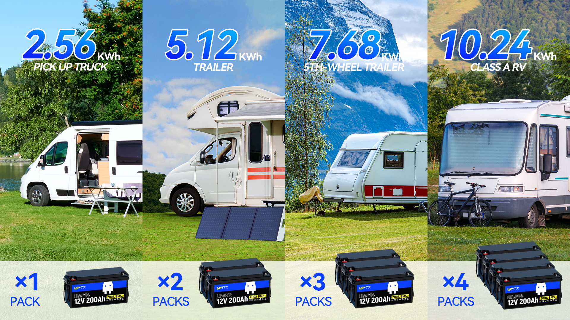 You can wire 12V 200Ah Core Series Batteries in series to build a 24V, 36V, or even 48V system in your RV.